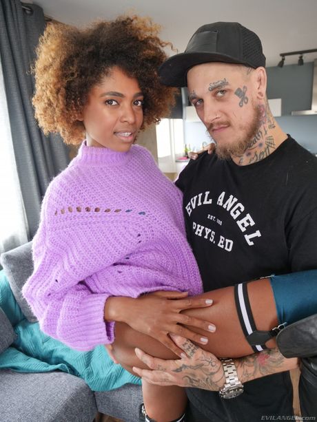 Black nubile Luna Corazon gets nude and exhibits her hefty udders and puss