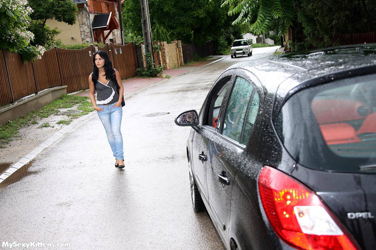 Brown-haired teenage gets pulverized firm after being picked up while ambling on a road