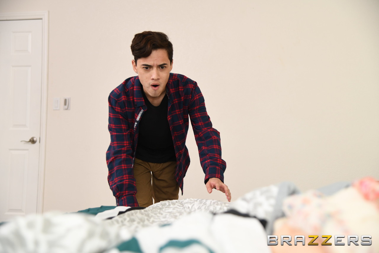 See 20 pics of Dark-hued stepmom Layton Benton pummels her masturbating stepson & takes a spunk shot.