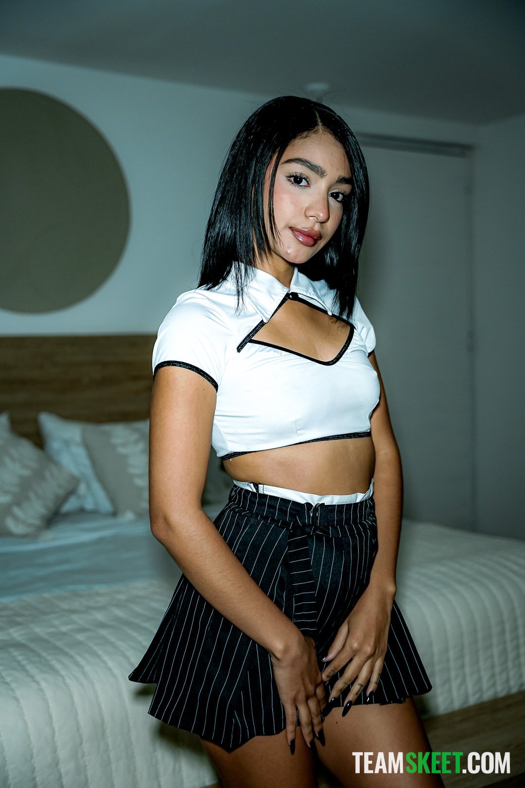 Latina teenage Karmen Bella sets her sexy assets fre...