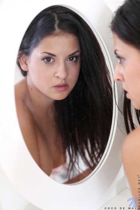 Hungarian teenage Coco De Mal unwraps and taunts with her little breasts & clean-shaven honeypot