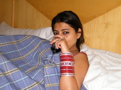 Lean Indian nubile slides a fake penis inwards her a...