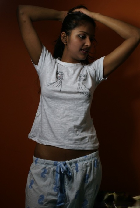 See 12 images of Marvelous Divya teases her boyfriend by frolicking with her rock hard breasts.