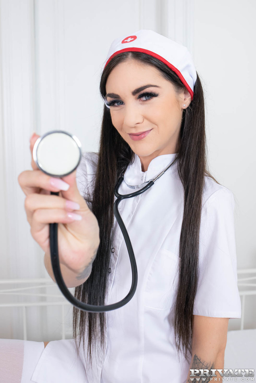 Kinky nurse Lullu Gun crams a test tube with nectar after pounding