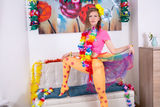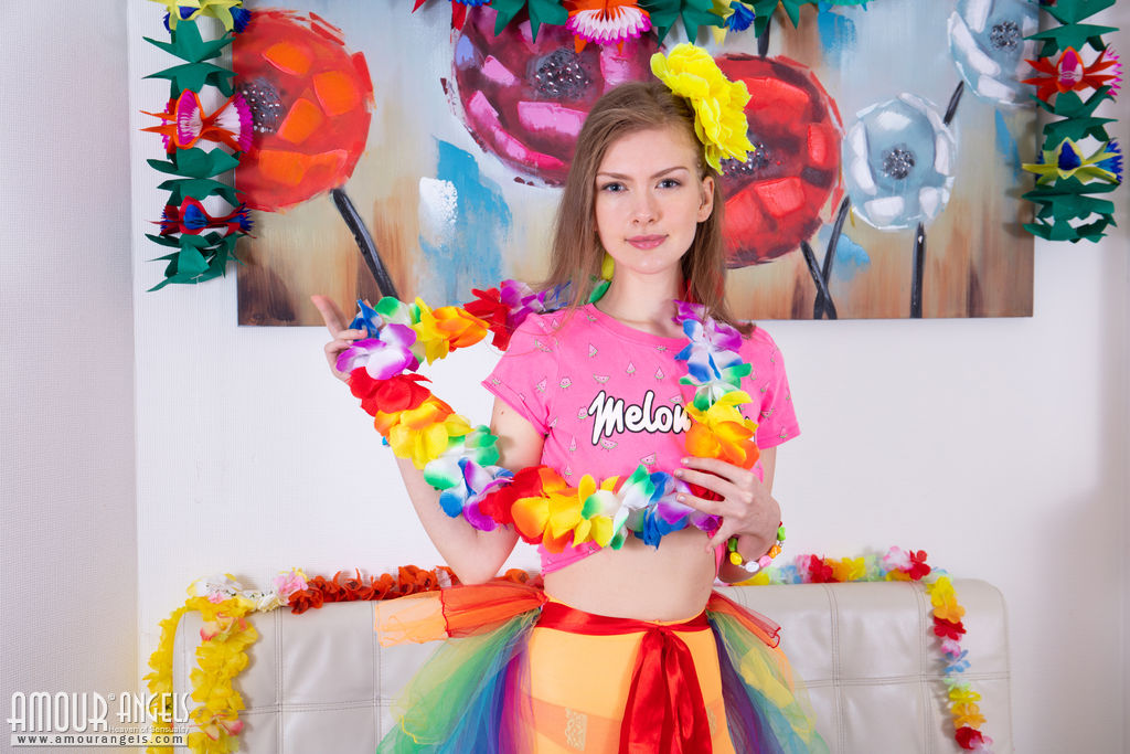 Teen cutie gets ready for a Hawaiian party and decides to show you her sexy naked assets