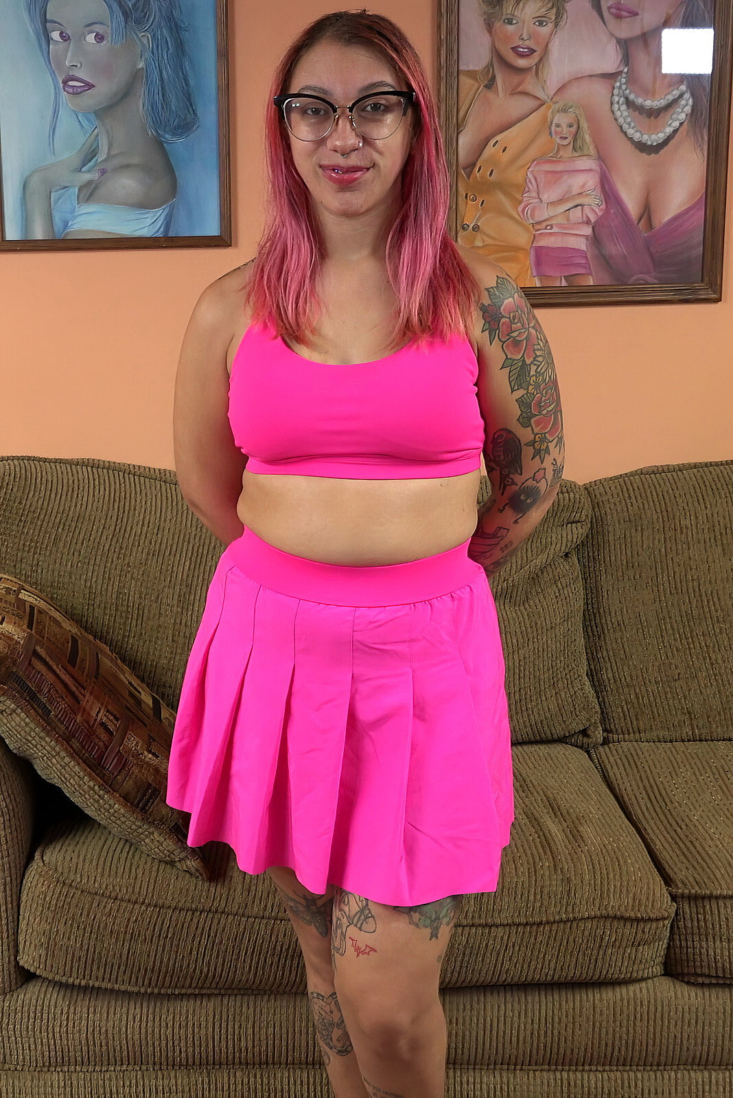 Thin teenager gal Janice Griffith stretches her taut...