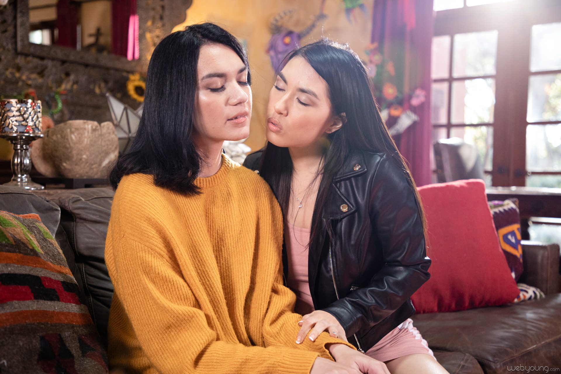 two Raven-haired Lezzies Pleasuring Each Other On The Bed images (Mina Moon, Sawyer Cassidy)