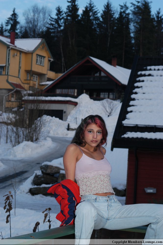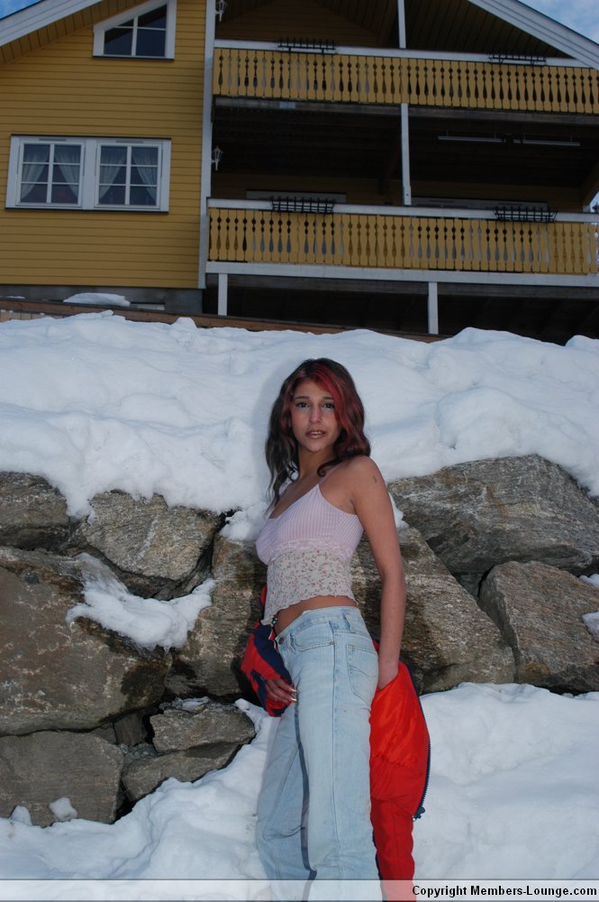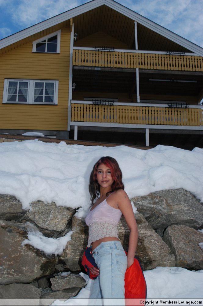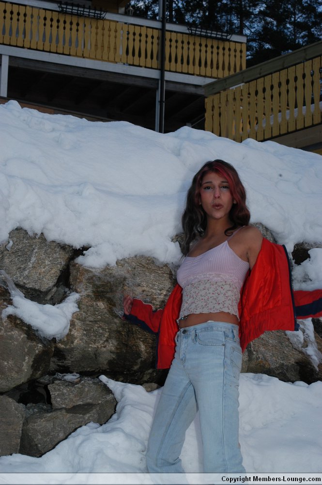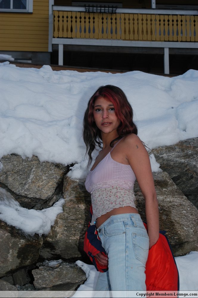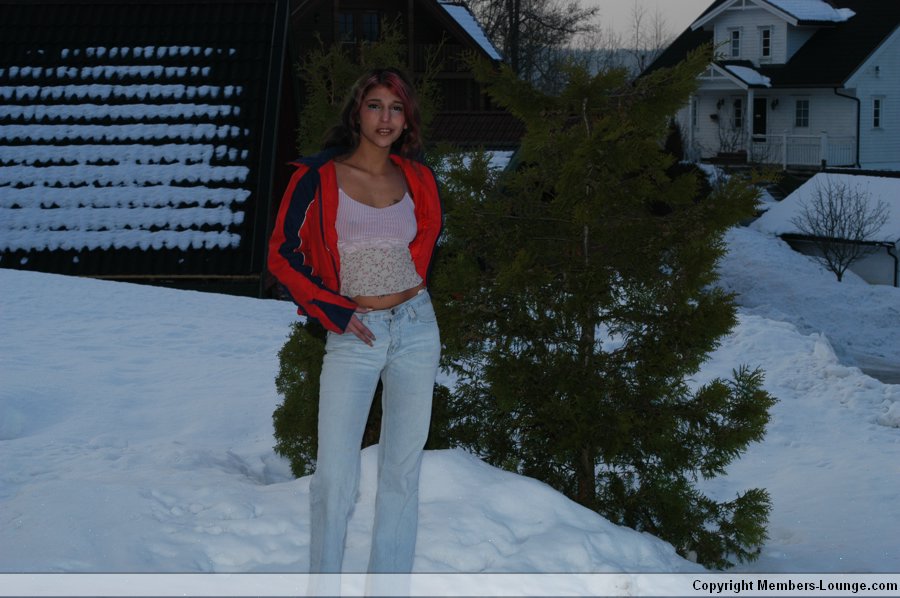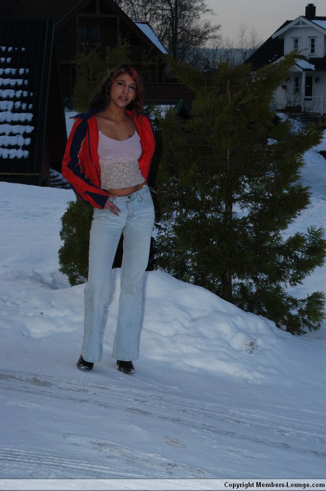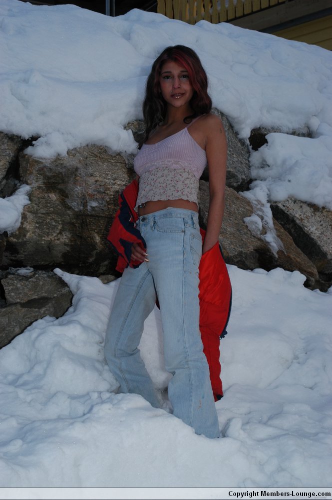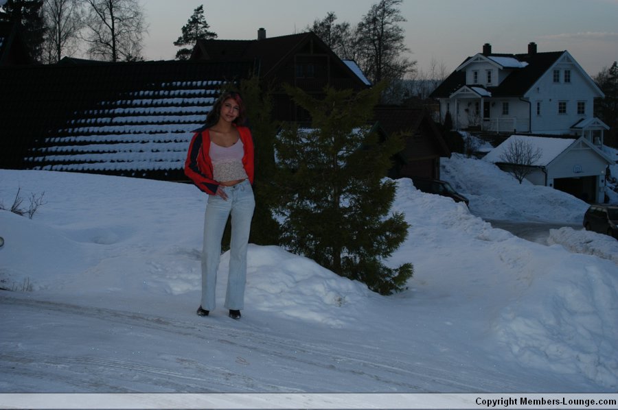 Wonderful Indian nubile poses on snow-facialed ground before going naked on a sofa